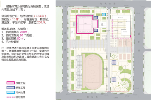 為應(yīng)對(duì)突發(fā)公共衛(wèi)生安全事件,提高城市的安全韌性,加強(qiáng)體育建筑的應(yīng)對(duì)能力,現(xiàn)擬將體育公園改建為疫時(shí)活動(dòng)板房隔離區(qū),其中主體育館改建為疫時(shí)方艙醫(yī)院主收治區(qū)。