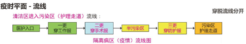 2、 醫(yī)務(wù)人員從污染區(qū)進(jìn)入清潔區(qū)也進(jìn)行了三次更衣。第一次為醫(yī)務(wù)人員從污染區(qū)進(jìn)入治療準(zhǔn)備區(qū)(半污染區(qū))的通過(guò)式更衣,細(xì)分為洗手、二脫防護(hù)服、一脫隔離服、緩沖,然后進(jìn)入治療準(zhǔn)備區(qū)(半污染區(qū))的通過(guò)式更衣。第二次更衣為從半污染區(qū)回到清潔區(qū)的通過(guò)式更衣,細(xì)分為二次換鞋,淋浴更衣(脫手術(shù)服)、一次更衣,然后回到醫(yī)務(wù)人員生活區(qū)。第三次更衣為從清潔區(qū)離開(kāi)醫(yī)院,在醫(yī)務(wù)人員生活區(qū)更衣間換回生活服裝后離院。