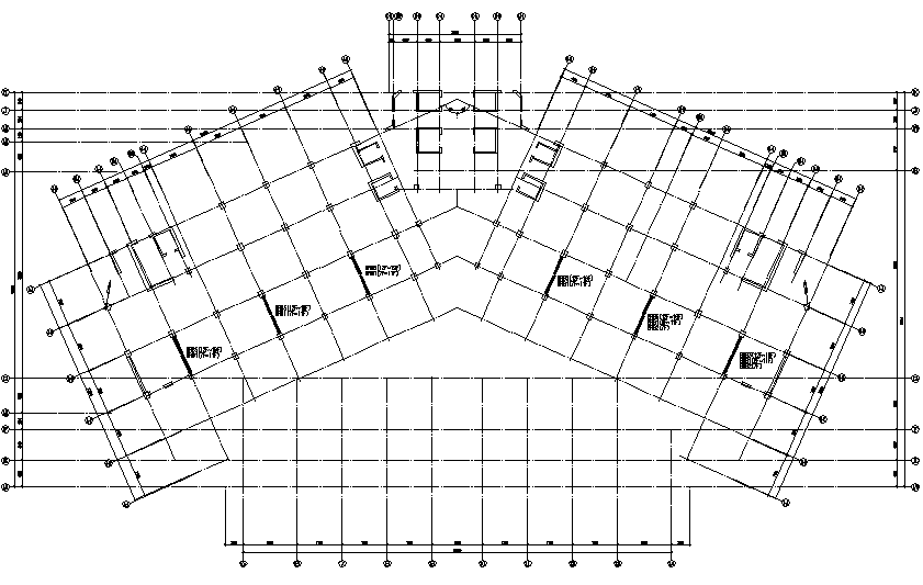 中山醫(yī)院醫(yī)療科研綜合樓集醫(yī)療與科研功能為一體,采用鋼筋混凝土框架-剪力墻結(jié)構(gòu)。大樓南北向布置,東西方向總長度為115.5 米,南北方向總寬度為66.5 米。地上20 層,裙房7 層,建筑高度87.950 米。裙房平面呈鉆石形,裙房以上主樓呈V形展開,夾角成132°。1~7層包含外科手術(shù)室、ICU、病理科等功能,8層以上為婦產(chǎn)科、外科、臨床驗證平臺病房等功能。裙房以下和以上房間布置差異大,從基礎(chǔ)通至主樓頂?shù)募袅H有北側(cè)樓電梯間和山墻局部部位可以布置,八層以上主樓沿橫向剛度偏弱,結(jié)構(gòu)抗扭轉(zhuǎn)能力欠缺。需要適當(dāng)調(diào)整上部樓層的剛度分布,改善建筑抗震性能。