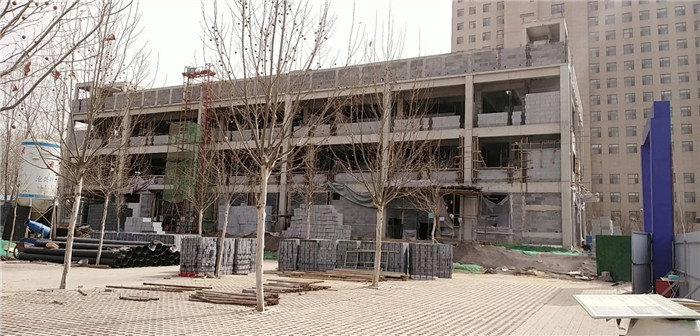 本工程為地上三層的框架結(jié)構(gòu),沒有地下室,建筑面積3123.43平方米,建筑高度13.90米,主要功能為發(fā)熱、腸道、結(jié)核病門診和病房?,F(xiàn)場施工進度如下圖所示。