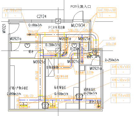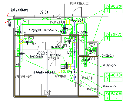 PCR實(shí)驗(yàn)室排風(fēng)管道平面圖